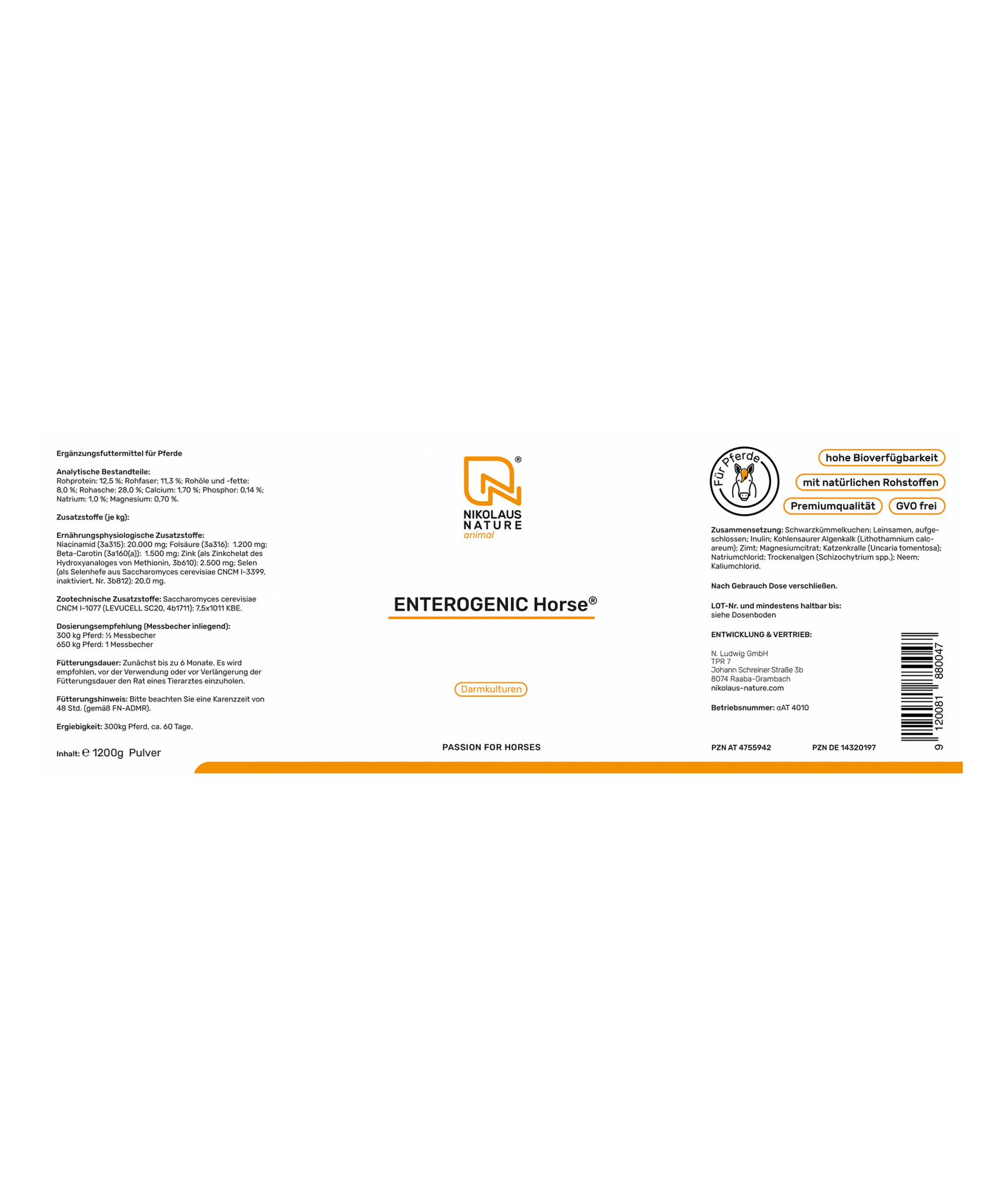 Der Verdauungstrakt ist eines der wichtigsten Organe für das Wohlbefinden deines Pferdes. Er versorgt den Körper mit Energie, reguliert das Immunsystem und beeinflusst Leistungsfähigkeit und Verhalten. Eine gestörte Darmflora – zum Beispiel durch Futterumstellung, Stress, Medikamente oder Erkrankungen – kann schnell zu Verdauungsproblemen führen. ENTEROGENIC Horse® fördert ein natürliches Gleichgewicht im Darm und unterstützt so die Gesundheit deines Pferdes von innen heraus.