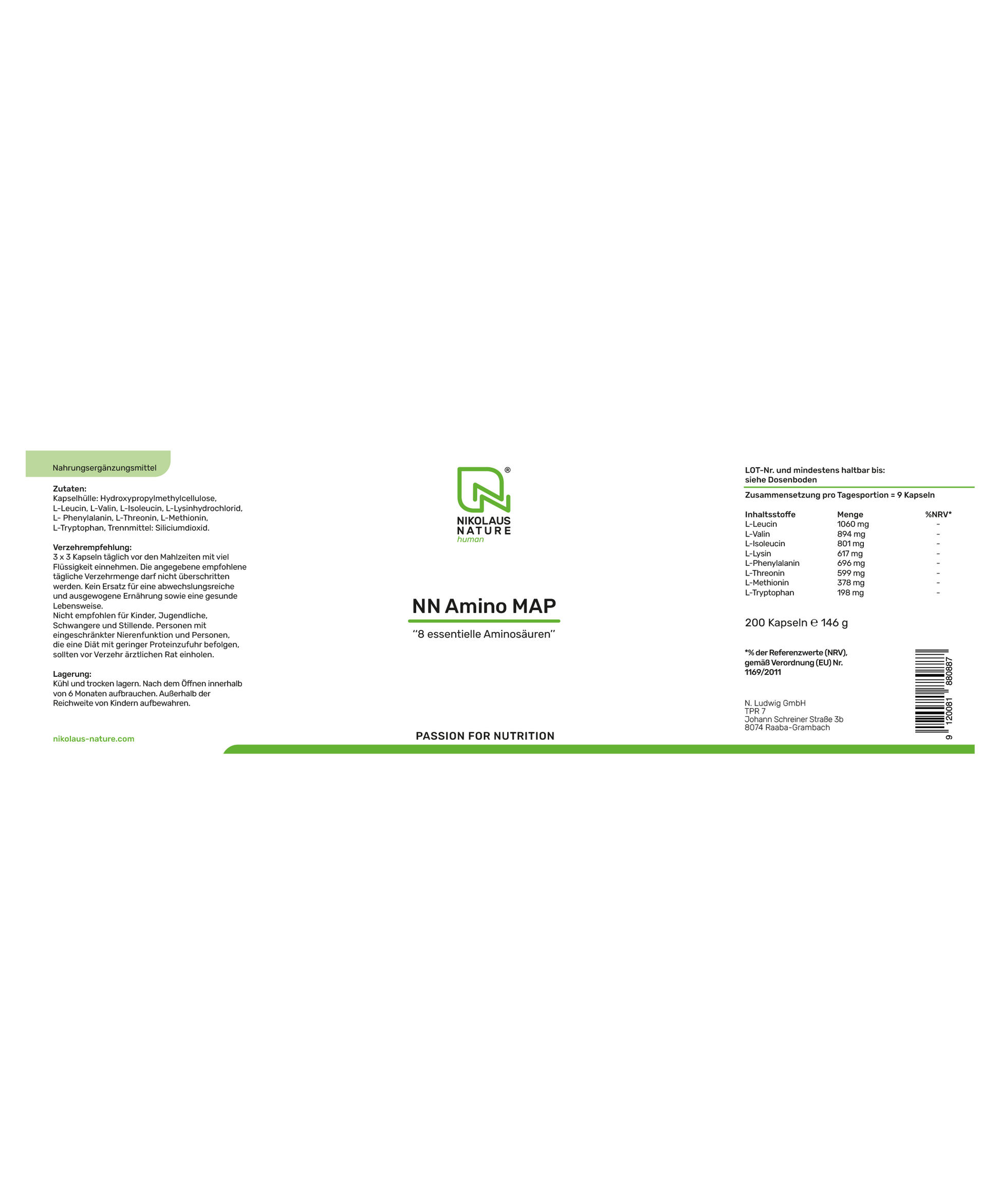 Die sogenannte MAP-Formel (Master Amino Acid Pattern) liefert die 8 essentiellen Aminosäuren in einer Zusammensetzung, die der menschliche Organismus besonders gut verwerten kann. Während herkömmliche Nahrungsproteine nur zu etwa einem Drittel effektiv in körpereigene Proteine umgewandelt werden, bietet NN Amino MAP eine maximale biologische Wertigkeit – ohne unnötige Stickstoffverluste oder Belastung des Stoffwechsels.