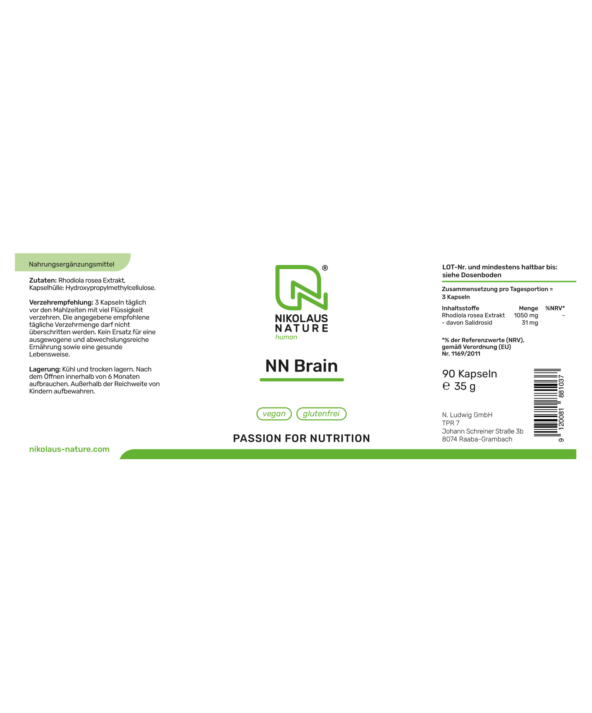 Ob vor Prüfungen, Präsentationen oder in besonders stressigen Lebensphasen – manchmal ist mentale Stabilität genau das, was du am meisten brauchst. NN Brain enthält hochdosierten Rhodiola rosea Extrakt, auch bekannt als Rosenwurz, eine Pflanze, die seit Jahrhunderten für ihre stärkenden Eigenschaften geschätzt wird. Sie zählt zu den sogenannten Adaptogenen, also Pflanzen, die den Körper dabei unterstützen können, besser mit Stress umzugehen – innerlich wie äußerlich.