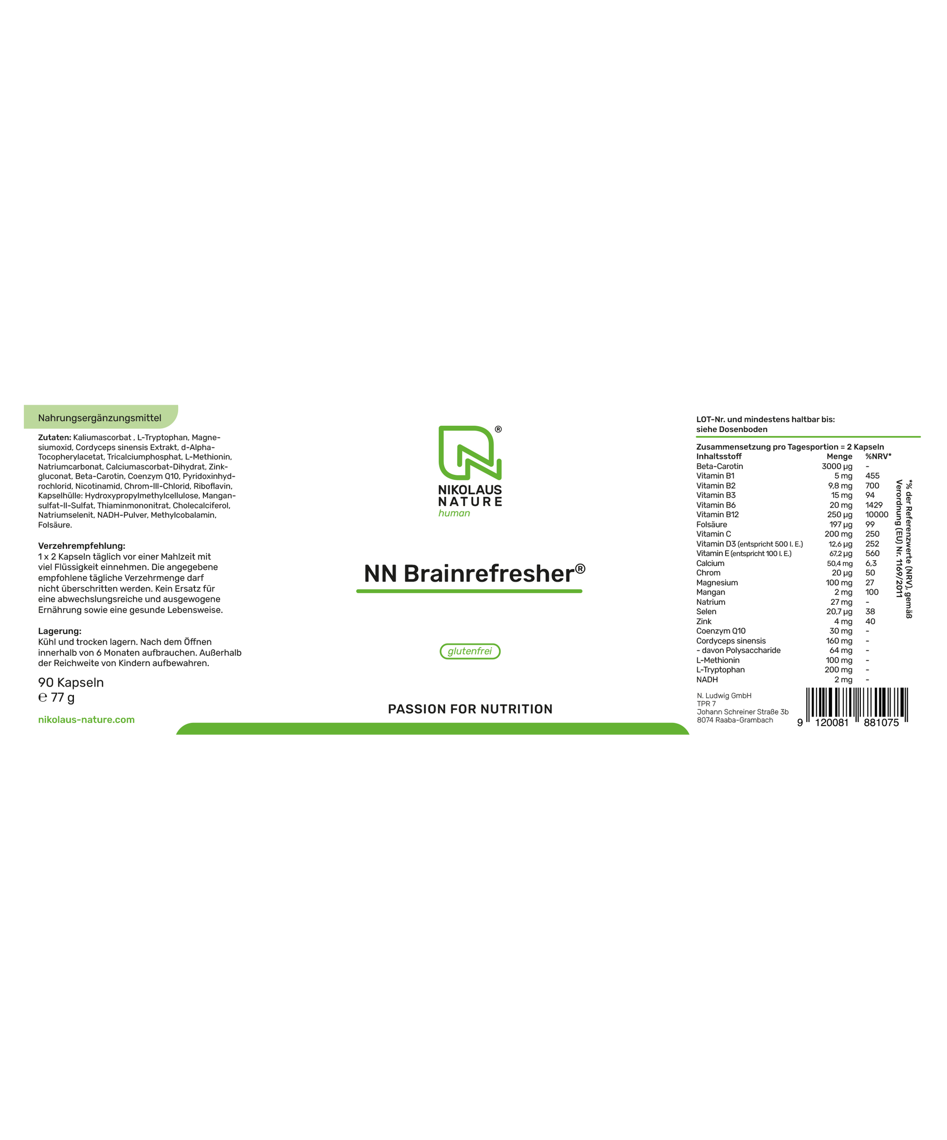 Das Gehirn gehört zu den energiehungrigsten Organen des Körpers. Um leistungsfähig zu bleiben, braucht es nicht nur Glukose und Sauerstoff, sondern auch eine gezielte Versorgung mit Vitaminen, Mineralstoffen und Aminosäuren. NN Brainrefresher® liefert diese Kombination – fein abgestimmt für deinen mentalen Alltag.
