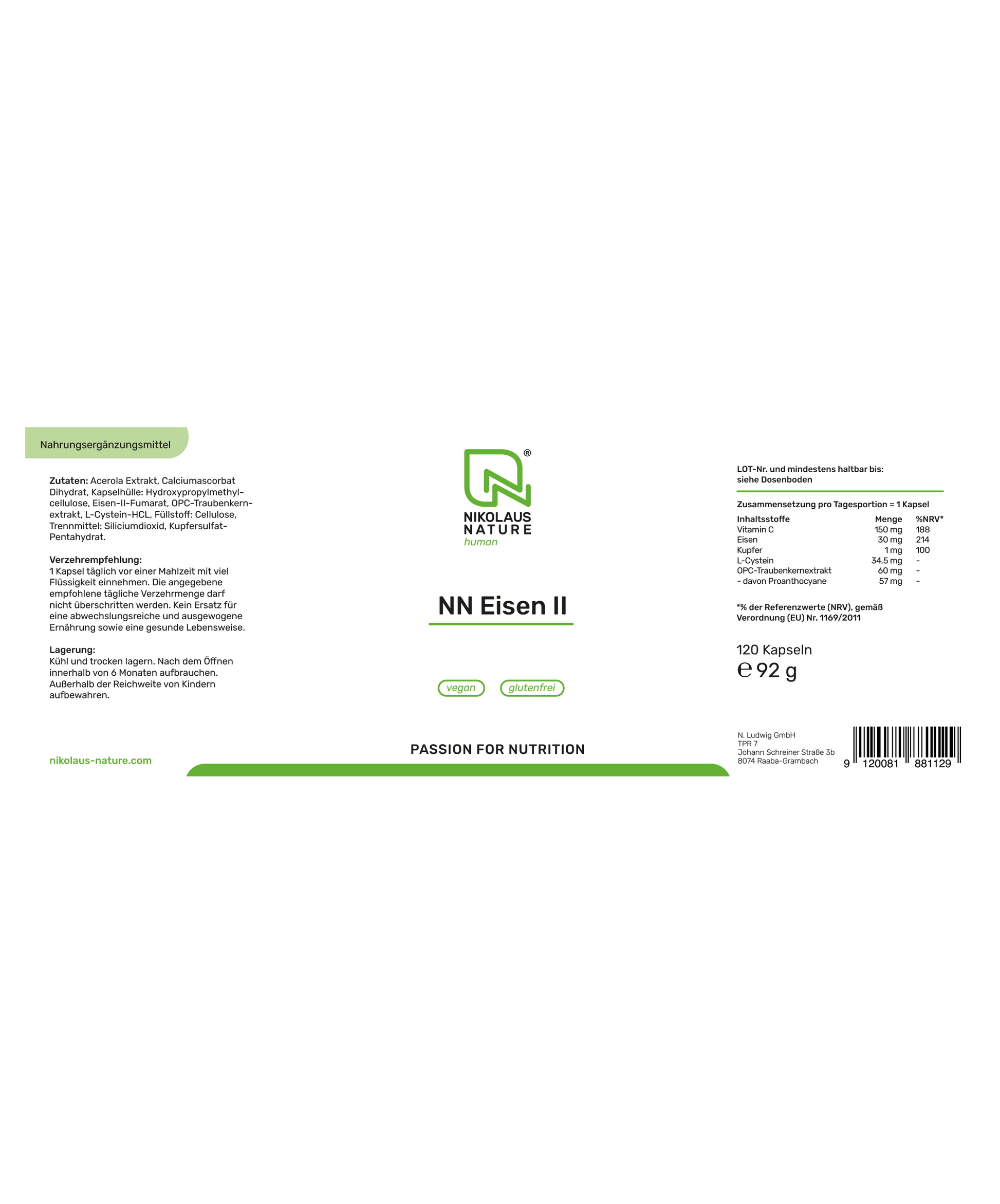 Eisen ist ein essentielles Spurenelement, das der Körper nicht selbst produzieren kann, das aber an über 150 biologischen Prozessen beteiligt ist. Besonders bei einer pflanzenbasierten Ernährung, in bestimmten Lebensphasen oder bei erhöhtem Bedarf kann die Versorgung ins Ungleichgewicht geraten. NN Eisen II kombiniert hochwertiges zweiwertiges Eisen mit Vitamin C und Kupfer – für eine optimale Aufnahme und Verwertung im Körper.