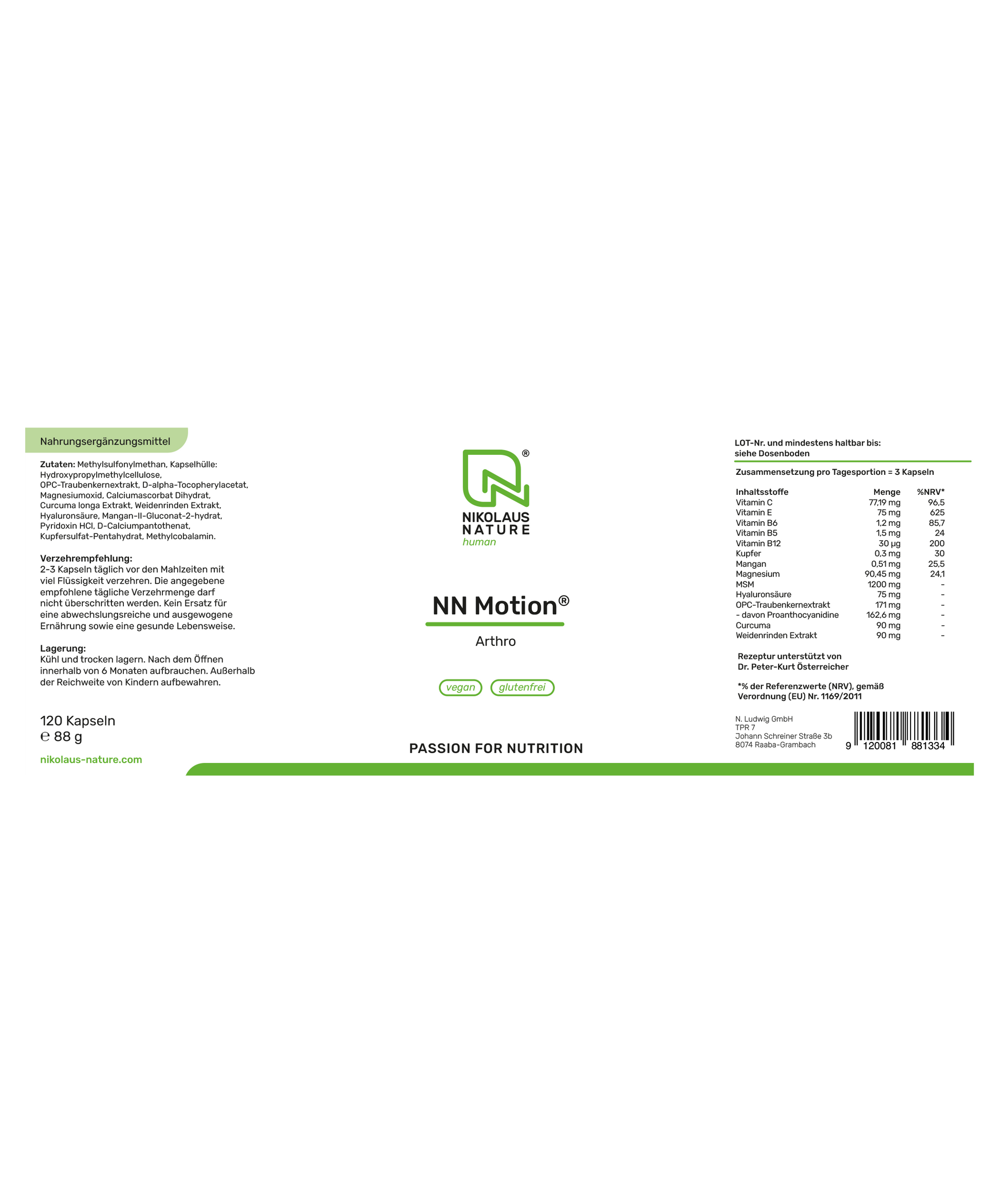 Kombiniere NN Motion® Arthro mit regelmäßiger Bewegung, ausgewogener Ernährung und kleinen Aktivpausen im Alltag. Bereits ein kurzer Spaziergang oder eine bewusste Dehnübung kann viel für deine Gelenkgesundheit bewirken – besonders in Verbindung mit der richtigen Mikronährstoffversorgung.