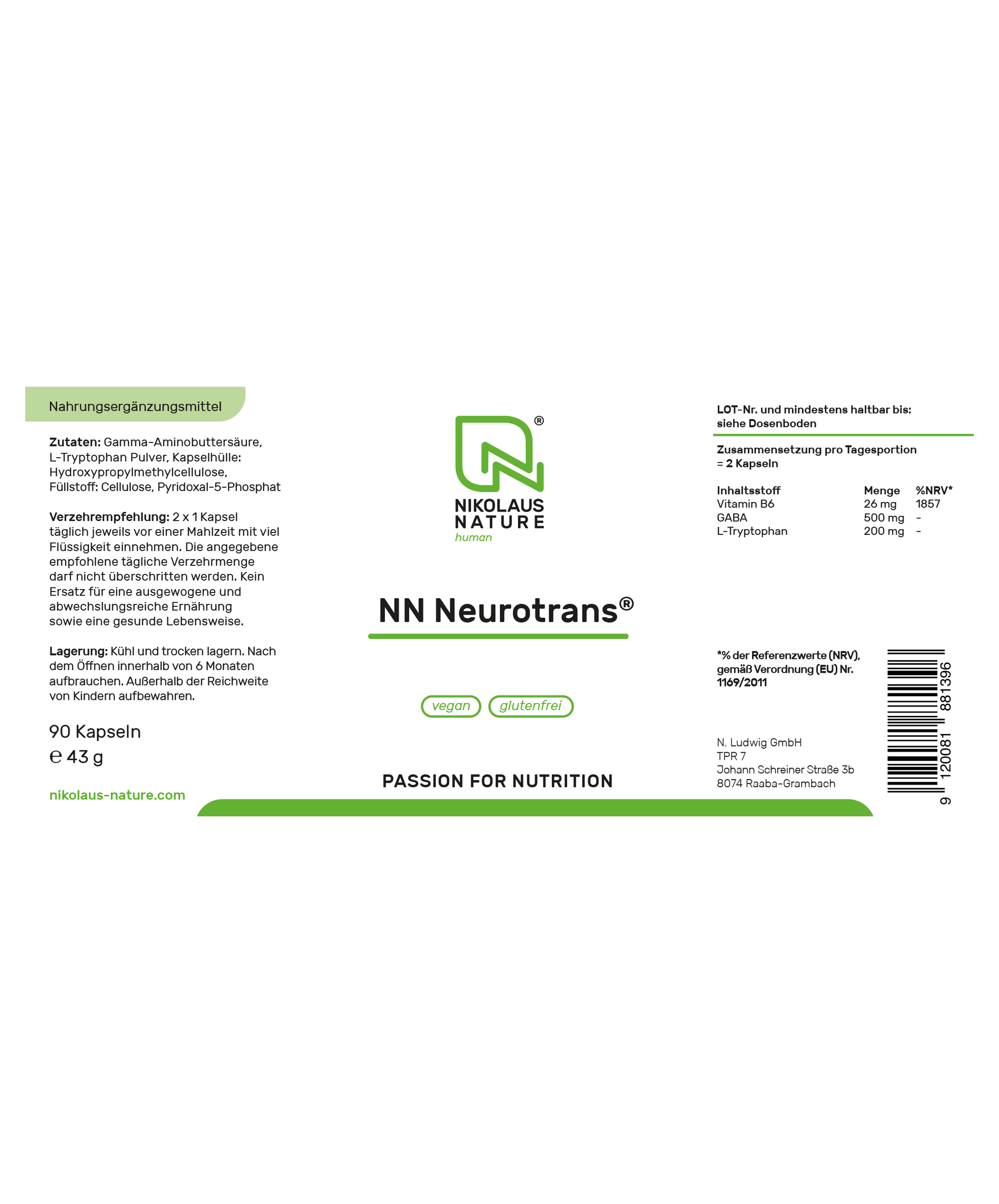 - Mit 500 mg GABA, 200 mg L-Tryptophan und 26 mg Vitamin B6 pro Tagesdosis