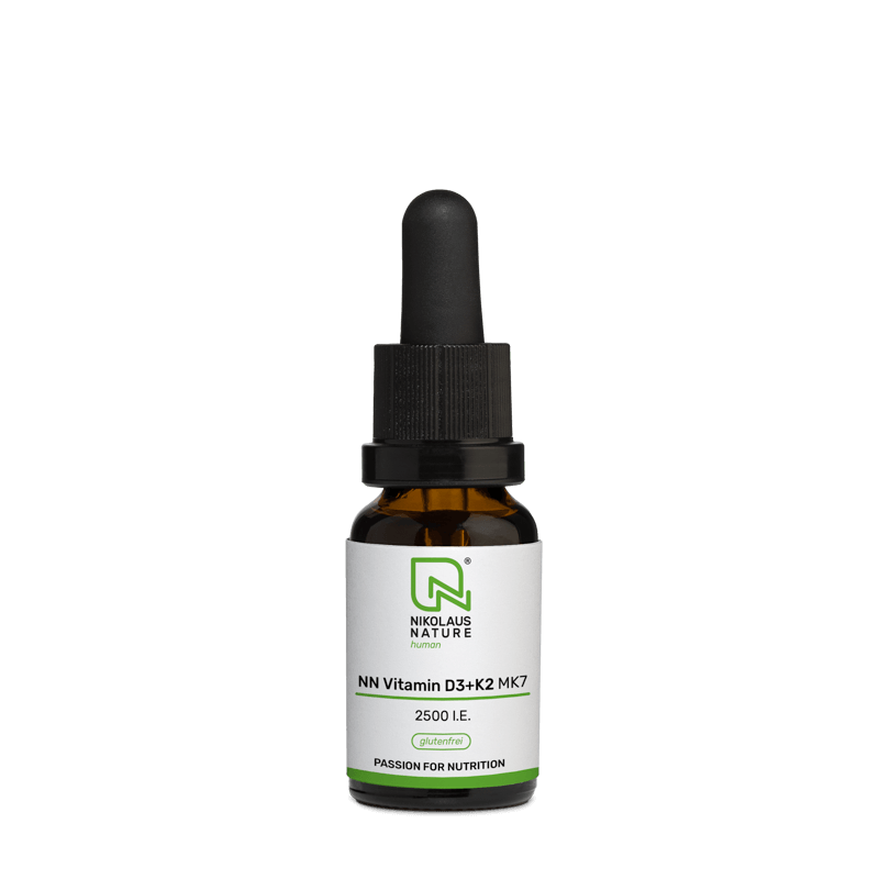 Starte deinen Tag mit einem Tropfen NN Vitamin D3 + K2 – am besten zu einer Mahlzeit mit gesunden Fetten, um die Aufnahme zu unterstützen. Kombiniert mit einem Spaziergang an der frischen Luft und einem bewussten Atemzug Sonnenlicht schenkst du deinem Körper alles, was er für starke Strukturen und mehr Wohlbefinden braucht.